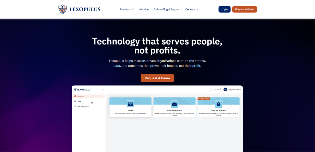 Lexopulus is a legal tech platform designed for legal aid organizations, nonprofits, and clinics to manage cases, intake processes, and reporting efficiently.